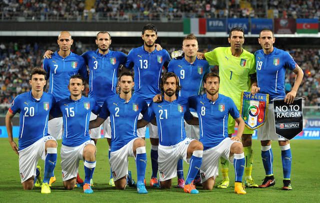 Italija je čak četiri puta bila Svjetski prvak, a talijani su redoviti sudionici europskih i svjetskih prvenstava, te su gotovo uvijek u krugu favorita za naslov. U domovini ih nazivaju Gli Azzuri što u prijevodu znači plavi. U bogatoj povijesti talijanske reprezentacije najviše nastupa je skupio legendarni aktualni vratar Gianluigi Buffon koji do sada ima 156 nastupa. Najbolji strijelac u povijesti Italije je Luigi Riva sa 35 pogodaka.