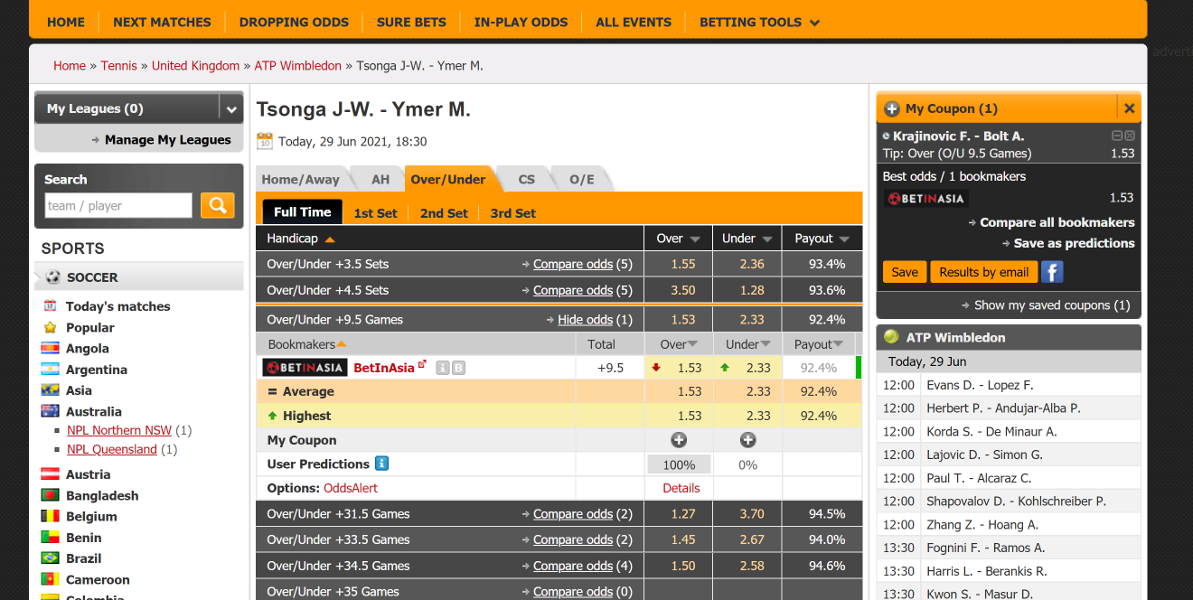 Imam pitanje u vezi stranice oddsportal, oni objavljuju ponude svih kladionica, i uglavnom za tenis ima u ponudi u nekim azijskim kladionicama over 9,5 gemova, što mi je jako čudno.