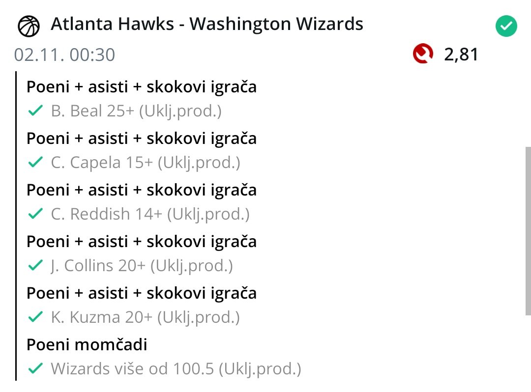 • (Koeficijenti 27.11. u 12:16 CET) Koeficijenti su podložni promjenama