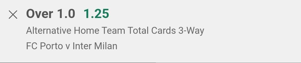 FC Porto - Inter Milan, Porto dobiva barem 2 kartona, 1.20, bet365