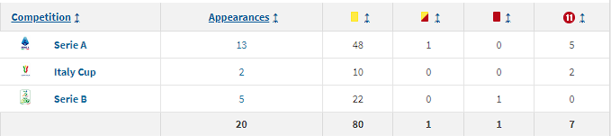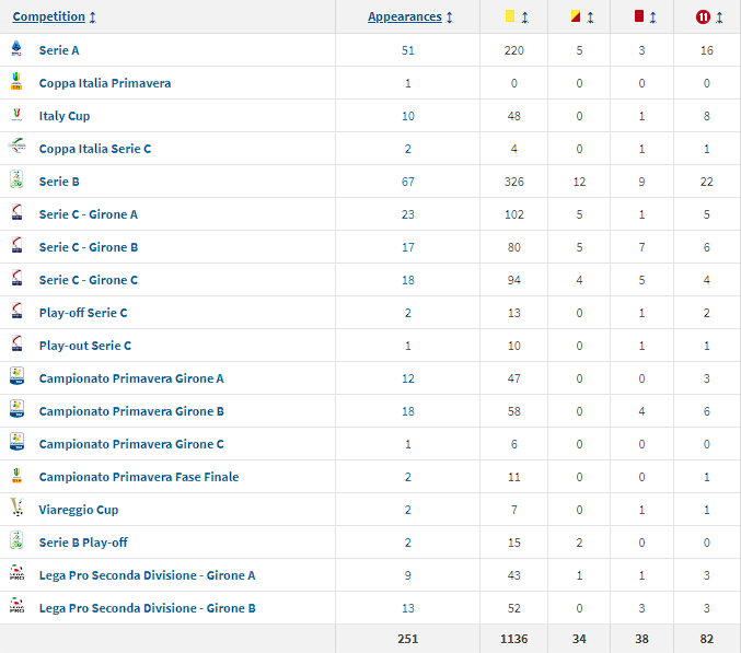 Na kraju sezone 2019.-2020. ima 21 nastup u Serie A. U lipnju 2019. je imenovan za uzvratnu utakmicu play-offa Serie B između Hellas Verone i Cittadelle, koja se igrala u lipnju 2019. godine.