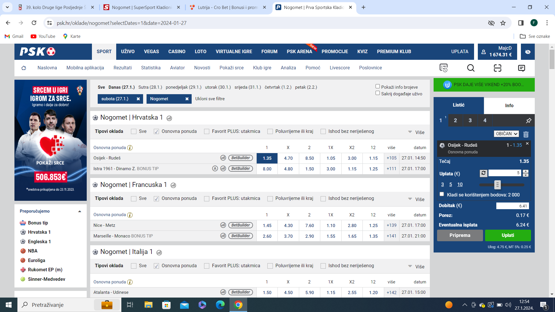 Subota 14:50 Osijek-Rudes 2+ @1,23 Lutrija BiH