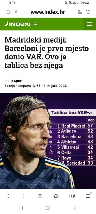 Logičnog objašnjenja nemam, a dosad se pokazalo da logika i nogomet nisu uvijek u simbiozi. Računam na jednostavni zakon brojeva ,visokih brojeva,tj.da je vrijeme da Real više izgubi meč u kojem se očekuje da će ići dalje. Žao mi je samo Luke,ali ova garnitura Reala je takva da svima idu na živce,osim njihovim navijačima,pa čak i nekim njihovim navijačima. Jučer čitam kako su napravili tablicu La Lige, kao bez grešaka Vara,na kojoj je Real prvi. Oni pričaju o sudačkim greškama, nevjerojatno. Da je Var postojao od 1955. oni bi imali maksimalno 6LP i 15 La Liga.