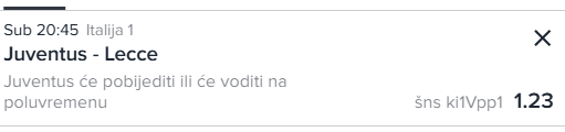 12.4. | FUDBAL | Juventus - Lecce | Juventus će pobijediti ili voditi na poluvremenu (1.23) Mozzart