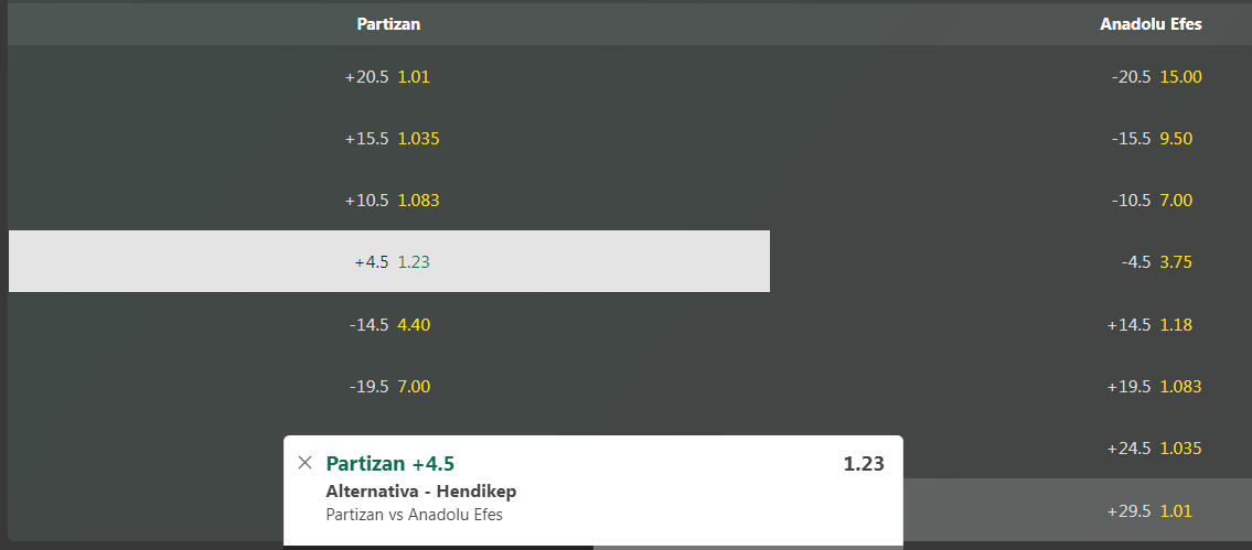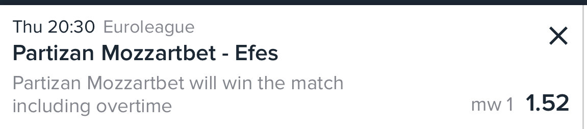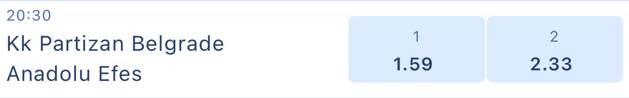 Izgleda da Efes stvarno dolazi u Beograd da yebe Partizana, cim sve kladionice dizu kvotu na domacina, i ne misle da stanu.