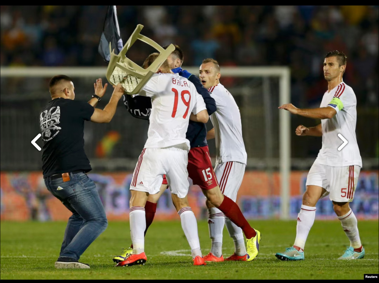 ja mislim da je Srbija jedno propalo i podeljeno drustvo i da ce biti sve gore i gore. U Srbiji danas prakticno ne moze da se odigra ni jedna jedina utakmica u bilo kom sportu, a da ne dodje do incidenata ili vredjanja Psiha na tribinama. Arena taj problem resava iskljucivanjem tona kada se tribine tresu od vredjanja Psiha, ali je problem kako iskljuciti drustvene mreze, kada se video klipovi sa vredjanjem Psiha razmenjuju u sekundi, a mlade generacije uopste ni ne koriste televizor. Plus sto Psiho ima problem sa organizovanjem utakmica u Beogradu gde ne moze da se kontrolise onolika masu ljudi kada 20.000 ili 50.000 ljudi pevaju pesmice o Psihu kao pedercicu. Na poslednjoj utakmici u Beogradu protiv Engleske, po celim tribinama su bili postavljene placene navijacke huliganske grupe koje su drvenim palicama napadali obicne ljude koji bi se usudili da pevaju one poznate pesmice o Psihu kao poremecenoj osobi sumnjive seksualne sklonosti. Zbog incidenata na utakmici sa Engleskom, Uefa je opet kaznila srpsku reprezentaciju zbog nekoliko prekrsaja. nemogucnosti bezbedjivanja reda i discipline untar stadiona, upotrebe lasera i neprimernih gestova, ometanja tokom izvodjenja himne i diskriminatornog ponasanja.