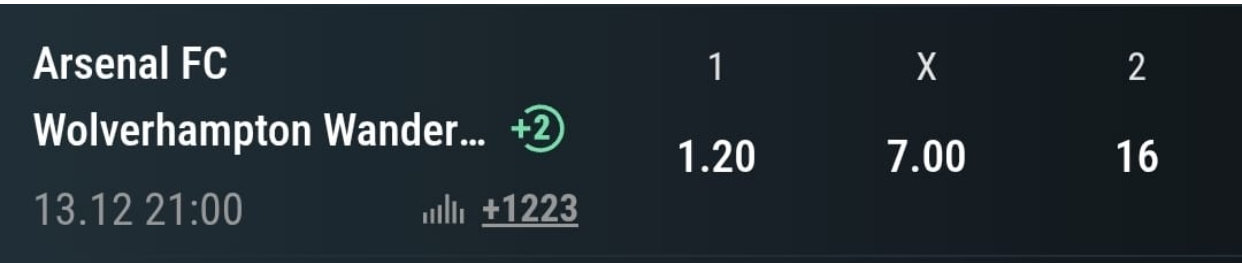 Arsenal daje vise od jednog gola Wolvsima u subotu, 13.12. Premier League, kvota 1,30 kod bet365 online kladionica">bet365