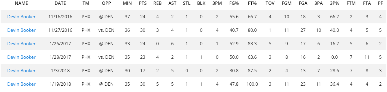 Prva opcija u napadu Sunsa, u prvom meču protiv Mavericksa ubacio je 35pts i mislim da je ovdje promašena granica za najmanje 2 poena, na 25,5 bi opet tipovao over ali granicu od 23,5 objeručke prihvatam. Ayton je upitan za ovaj meč a pravo na igru dobija Jamal Crawford, Jamal će biti, kao i do sada, sixth man a ukoliko Ayton bude out još više lopti će ići u ruke Bookera jer Tyson Chandler i Richaun Holmes su poznatiji kao dobri rebounderi i odbrambeni igrači. U zadnje tri sezone Booker protiv Nuggetsa ima slijedeće brojke: