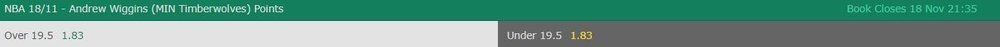 Izgleda da je Wigins jedva čekao da Butler napusti ekipu, što je po meni vrlo dobar potez Minesote jer će Andrew dobiti mnogo više prostora za igru i uzimati više šuteva. Tako je na zadnje dvije utakmice uzeo preko 20 šuteva, a margina koja je kada je Butler bio tu varirala između 15 - 17 sada iznosi 19,5 i mislim da će još više rasti. Tako da treba iskoristiti ovu priliku jer vjerujem kako će ovo Wigins bez problema prebacitii.