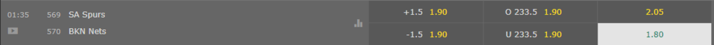 San Antonio Spurs - Brooklyn Nets 2 (1.80) bet365