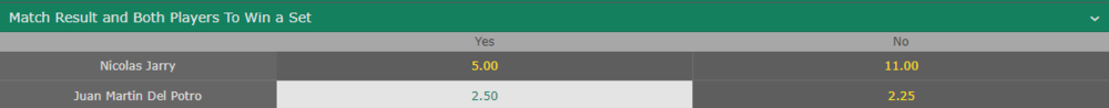 Jarry - Del Potro | Pobjeda Del Potra i oba tenisera uzimaju po set (2.50) bet365