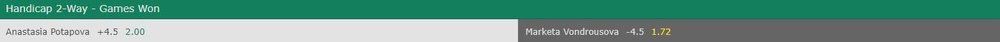 Potapova - Voundrusova // +4,5 Potapova bet365 - 2,00