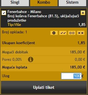 Fenerbahče je na putu oporavka i cilja na plejof nakon katastrofalnog starta. Proigrao je Sloukas, Željko polako slaže kockice i ovo je prilika za novi trijumf, a imajući u vidu posljednje igre obje ekipe, radije ću pokušati sa timskim overom Fenera za kojeg mislim da će ubaciti i više od 82 poena.