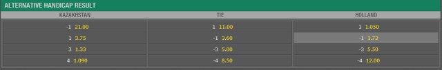 Nizozemska više nema pravo na pogrešku, ako napokon ne odigraju dobru utakmicu i ne slave protiv slabašnog Kazahstana, tada ih nećemo gledati u Francuskoj što bi bila daleko najveća senzacija. Zbog toga igramo hendikep na Nizozemsku iako ona to svojom igrom u ovim kvalifikacijama nikako nije zaslužila.