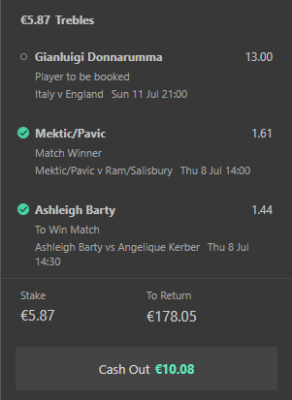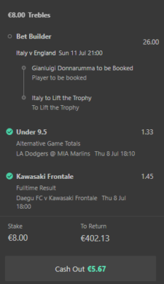 bet365 daje nevjerojatnih 26,00 da će Italija uzeti naslov a Donnarumma dobiti karton. Koeficijent je fantastičnih 37,37 sa opcijom da Italija pobjeđuje u regularnom vremenu a Donnarumma dobiva karton.