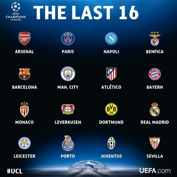 Drugoplasirani u skupinama: Paris Saint-Germain (A, FRA), Benfica (B, POR), Manchester City (C, ENG), Bayern München (D, GER), Bayer Leverkusen (E, GER), Real Madrid (F, ESP), Porto (G, POR), Sevilla (H, ESP).