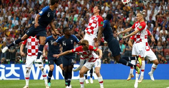 Hrvatska je dobro ušla u meč, dominirala imala loptu u svom posjedu, u nekolko navrata zaprijetila Hugi Llorisu ali su nakon sumnjivog prekršaja Francuzi poveli kada je Mandžukić u duelu sa Pogbom koji je bio u nedozvoljenoj poziciji, loptu poslao u vlastitu mrežu.