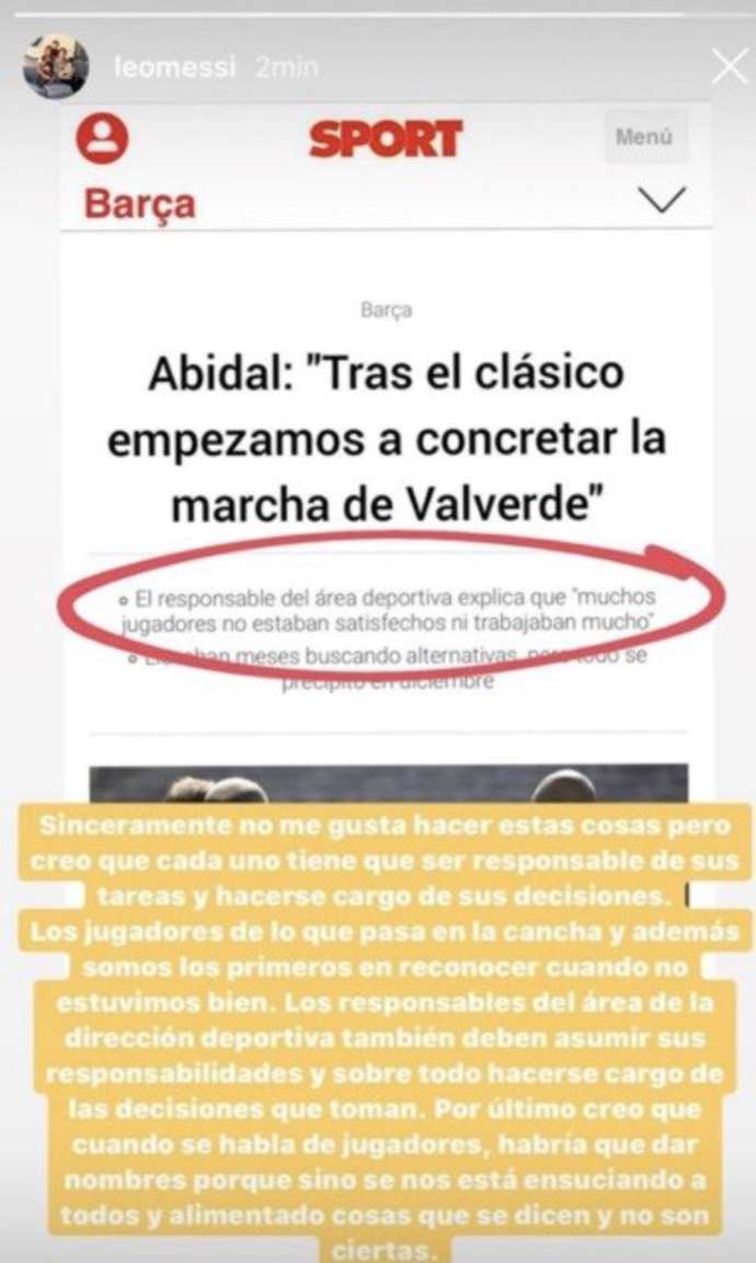 Messi je odgovorio na postu na Instagramu zahtijevajući da Abidal imenuje igrače.