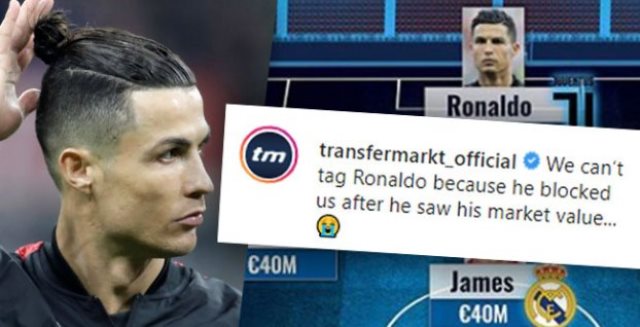 Naime, Transfermarkt je ažurirao vrijednost igrača, a cijena Cristiana Ronalda opala je za 15 miliona eura – sa dosadašnjih 90 na 75 miliona! To se nije nimalo svidjelo Portugalcu, koji je blokirao profil Transfermarkta na Instagramu!
