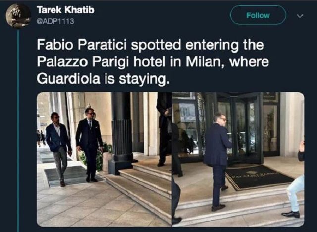 Evo i dokaza da je Fabio Paratici, direktor Juventusa bio u hotelu u Milan u kojem je Guardiola odsjeo.